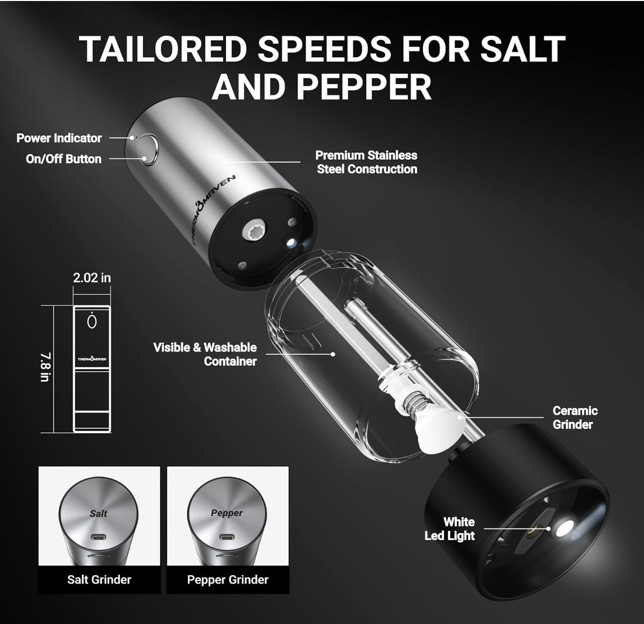 AutoSpice Salt & Pepper Grinder (2 Grinders)